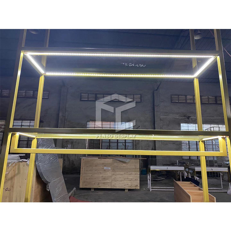 المادة الرئيسية: الفولاذ المقاوم للصدأ مع الطلاء الكهربائي اللون الذهبي ؛جميع المواد المستخدمة التي استخدمناها ذات جودة عالية تصل إلى المعايير العالمية.يمكن تصنيع جميع المواد والألوان والأحجام.يمكن أن تبرز الأرفف الزجاجية مع مصابيح LED منتجاتك ؛يمكنك وضع حقائبك أو الجينز أو القمصان أو الأحذية عليها ؛