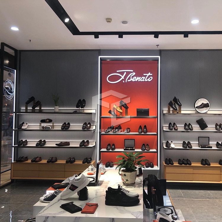 تقوم Penbo Display Furniture بالتصميم الداخلي للمتجر وتصنيع أثاث عرض الأحذية.